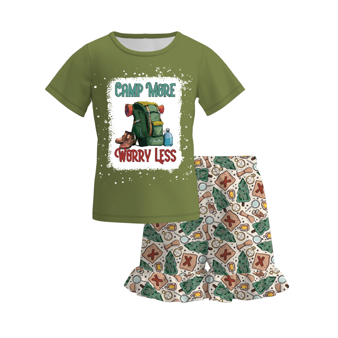 Get ready for some serious summer fun with our Girls Summer Camping Print Short Set! Made with lightweight and breathable material, this set is perfect for all your camping adventures. The vibrant camping print adds a playful touch to this comfy and stylish outfit. Stay cool and stylish all summer long!