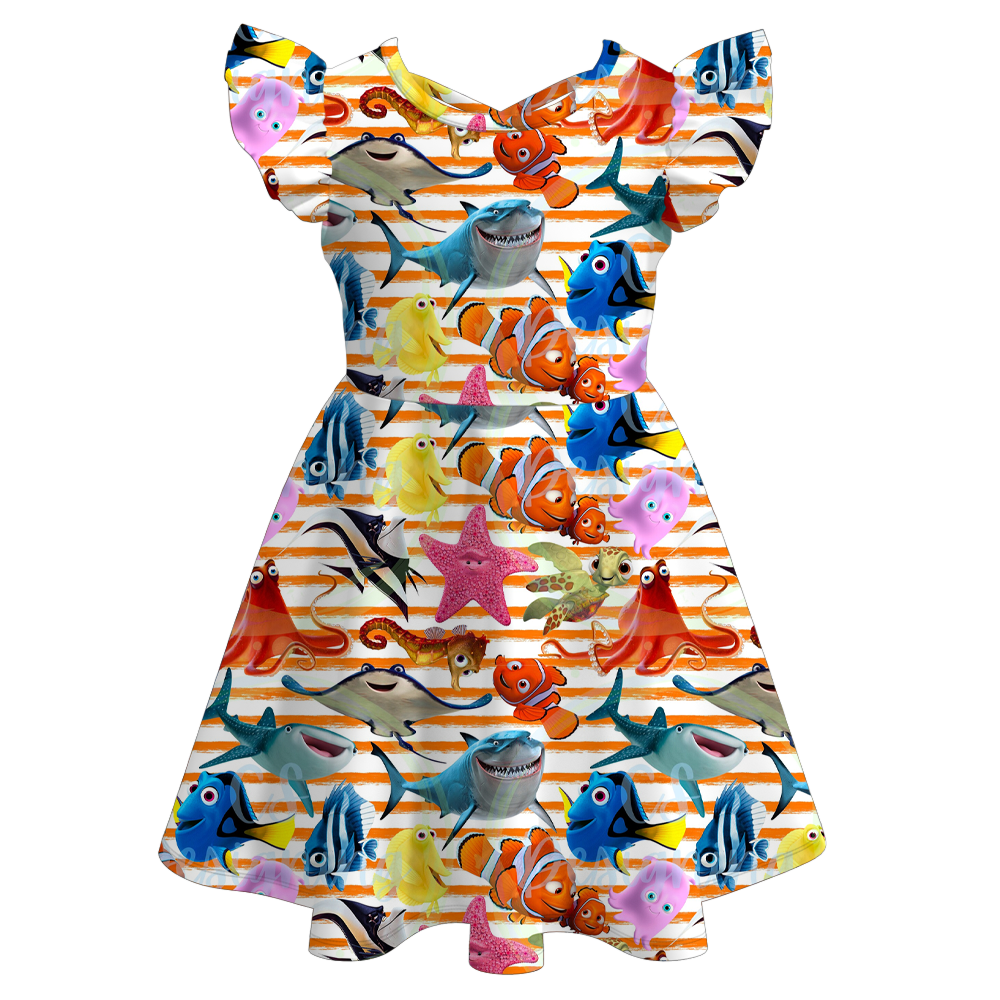 (Pre Order)Girls Summer Cartoon Print Twirl Dress