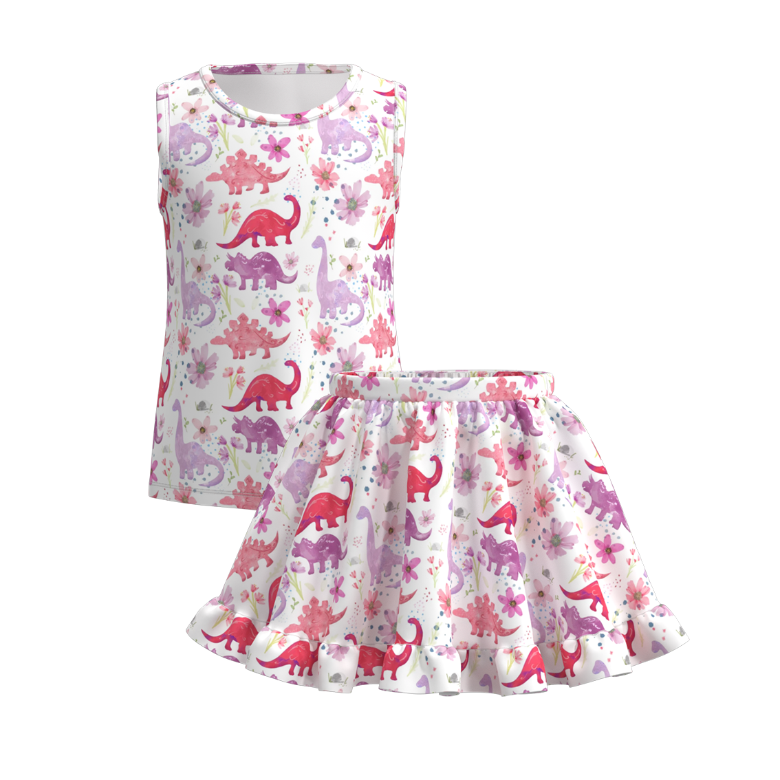 (Pre Order)Girls Summer Dinosaurs Print Skirt Set